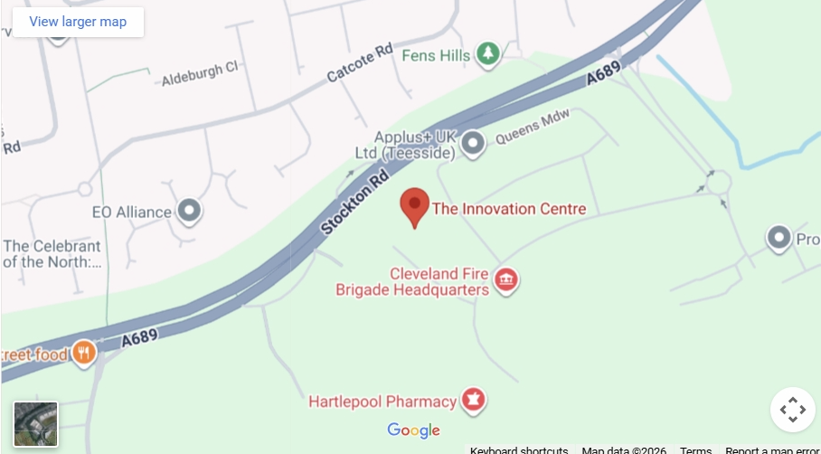 Check out our location based at UK Steel Enterprises Innovation Centre, Venture Court, Queens Meadow Business Park, Hartlepool, TS25 5TG. In a handy spot just off the A19/A689 main road towards Billingham, Middlesbrough and Stockton-on-Tees.